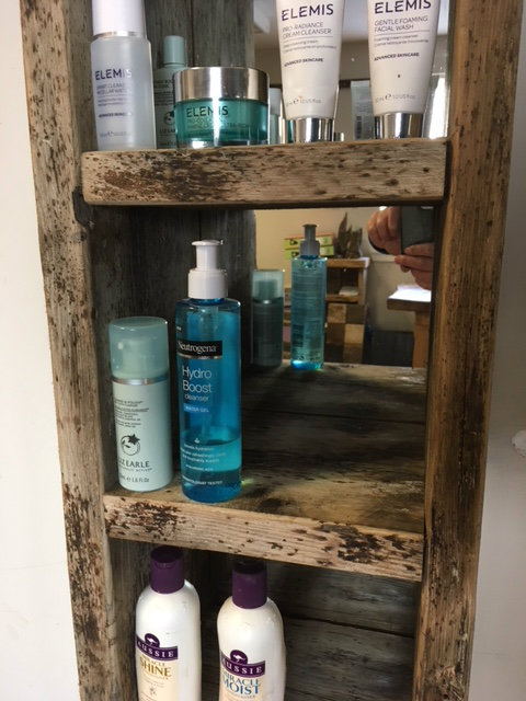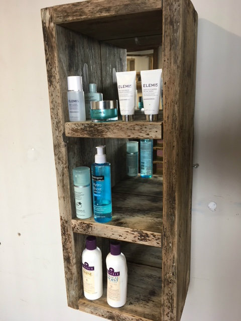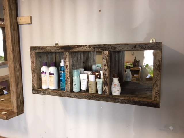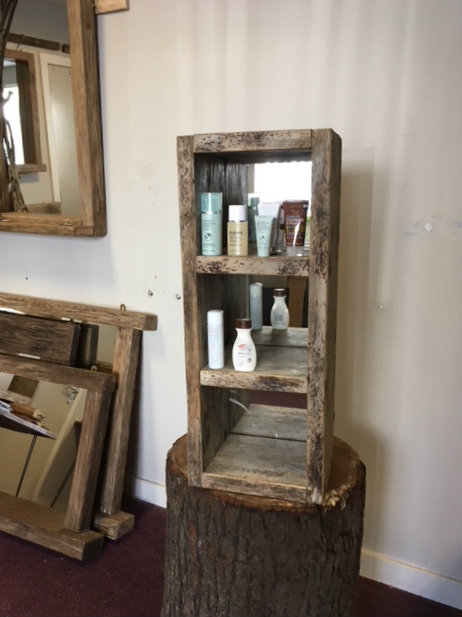 These sensational shelving units are hand crafted and have a mirrored back.