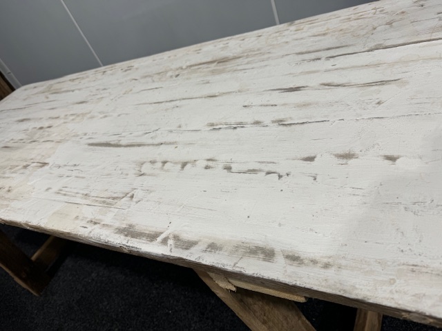 White distressed Trestle Table