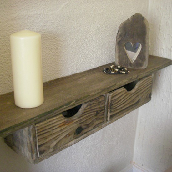Rustic Driftwood Floating Drawer Shelf